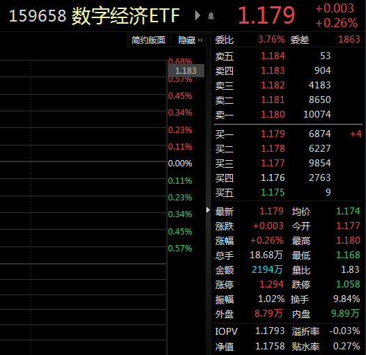 大华股份为数字经济ETF(159658)的成份股,数字经济ETF(159658)早盘低位震荡后小幅拉升翻红,截至发稿,数字经济(159658)涨0.26%,成交金额破2100万元,换手率为9.84%,交投活跃。成份股方面,除大华股份外,景嘉微涨超5%,晶晨股份、澜起科技涨超4%,海康威视、德赛西威、中微公司等涨近3%。