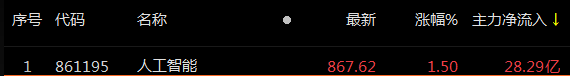 今日早盘,三大指数高开,人工智能概念板块获主力抢筹,截至发稿,该板块主力资金净流入超28亿元。