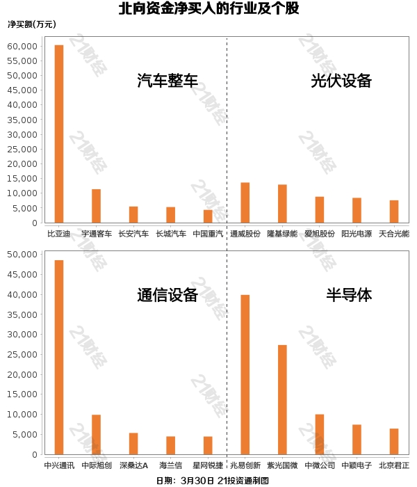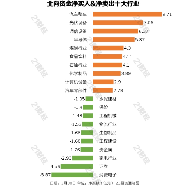 据21投资通智能监测,3月30日,北向资金净买入48.07亿元,其中沪股通净买入23.91亿元,深股通净买入24.16亿
