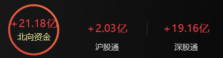 北向资金半日净买入21.18亿元,其中沪股通净买入2.03亿元,深股通净买入19.16亿元。
