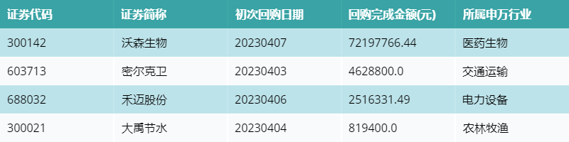 上周共有4条开始执行回购公告,详情如下: