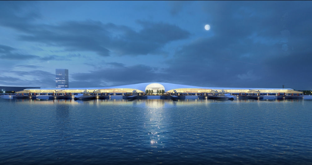 图为徐闻港“得月门”,建筑呈凹陷半月状,取“近水楼台先得月”之意。