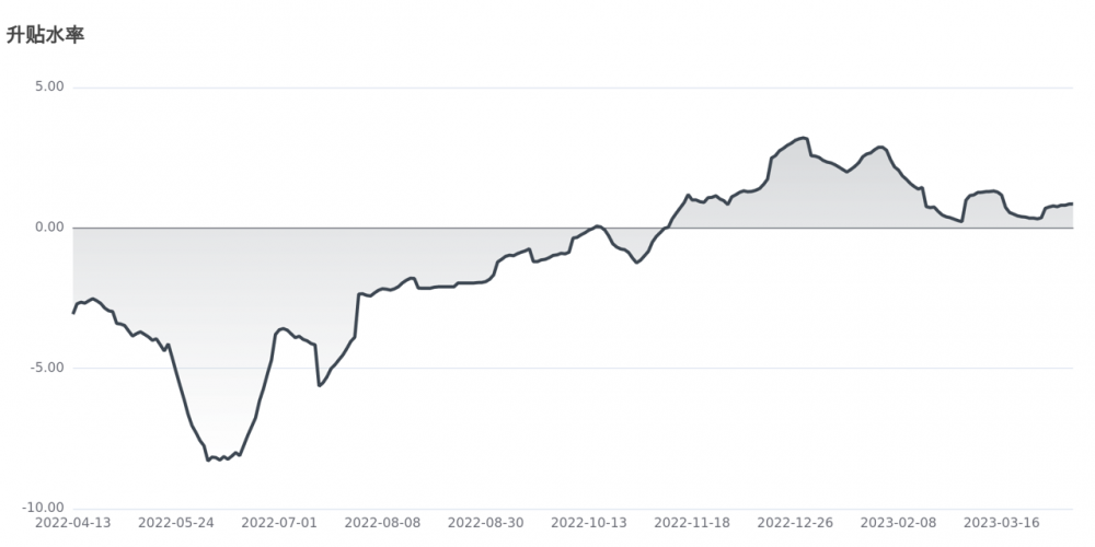 今日该指标值为0.85%,目前该指标处于近一年较高区间,说明投资者认为当前A股市场相对较强。反映期货市场投资者对市场的看法,该指标越高说明投资者认为当前市场较强,越低则说明认为市场相对较弱,因而与上证指数正相关。