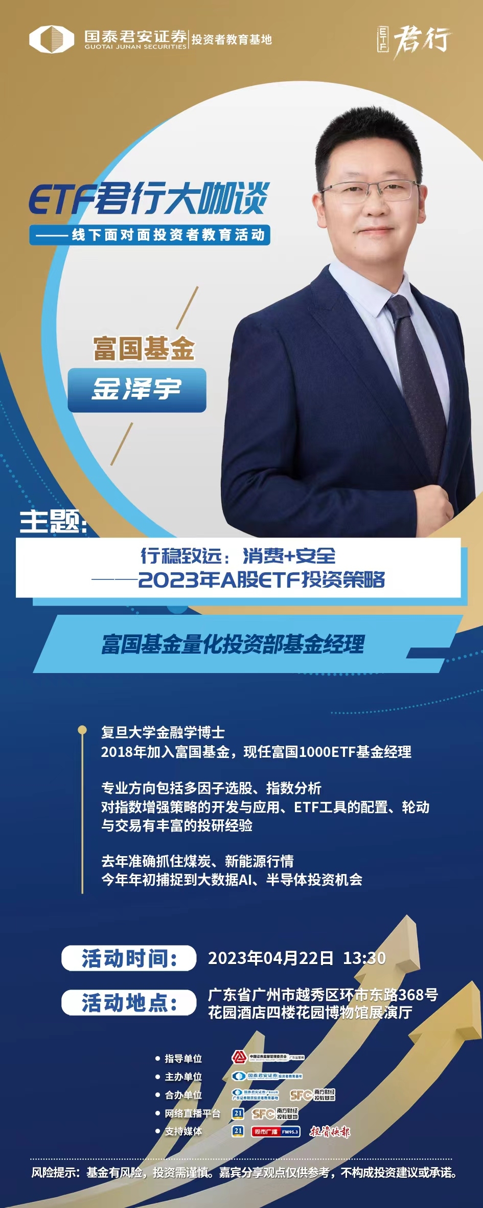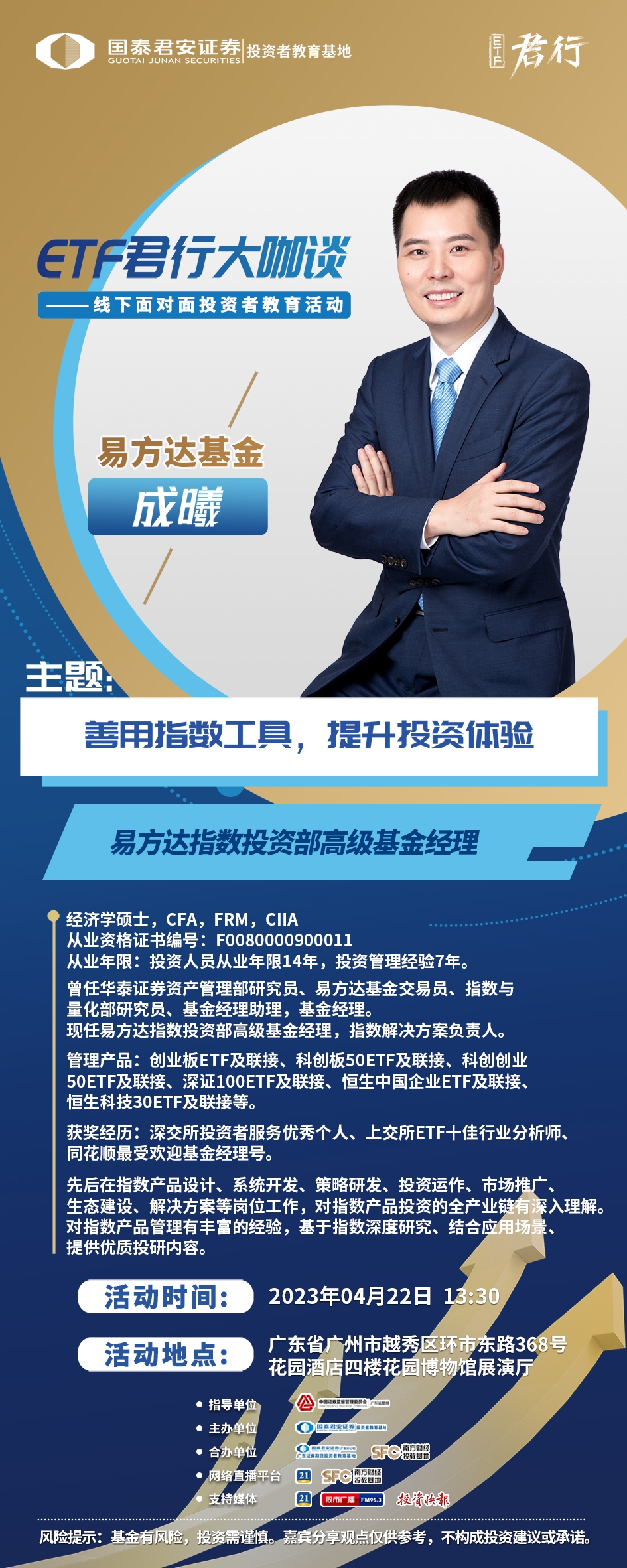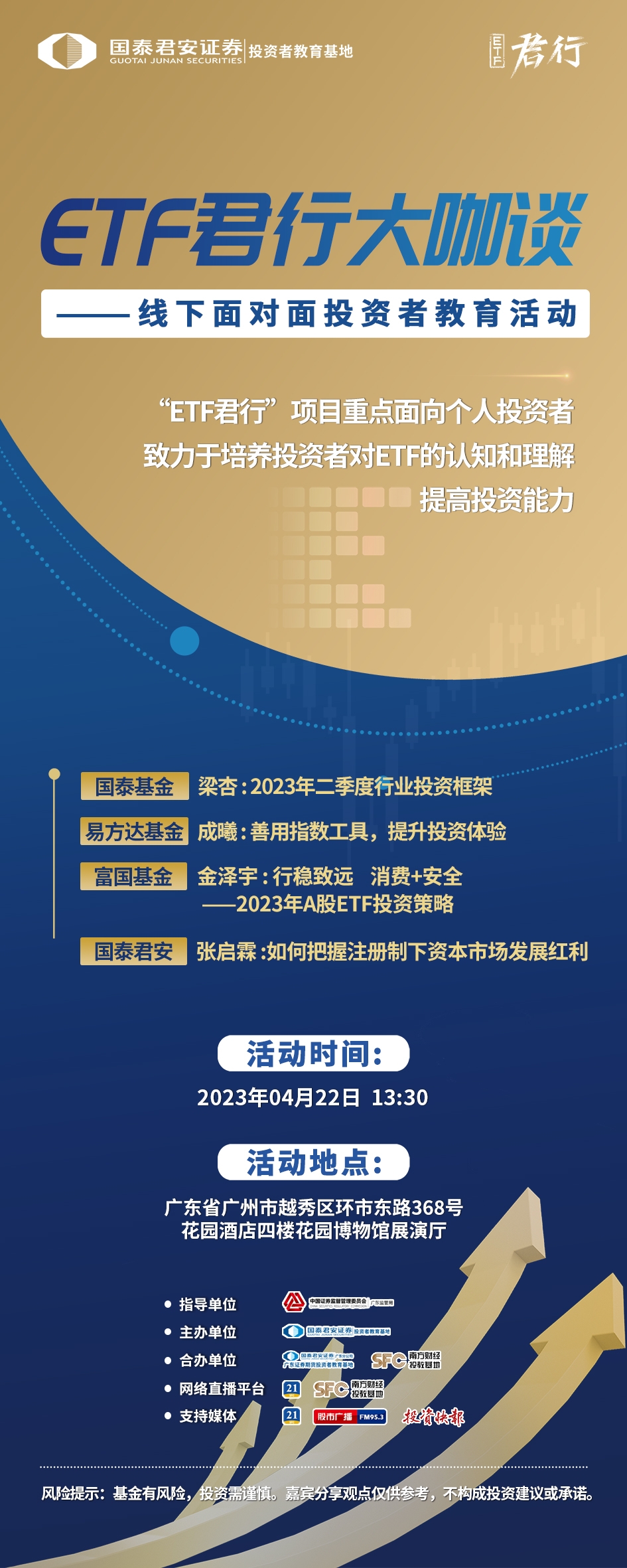 4月22日13:30,广州花园酒店,国泰君安国泰基金、易方达基金、富国基金知名基金经理、国泰君安首席投顾与您畅聊ETF,精彩内容,不容错过!