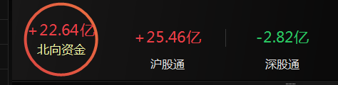 北向资金午后回流,全天净买入22.64亿元;其中,沪股通净买入25.46亿元,深股通净卖出2.82亿元。