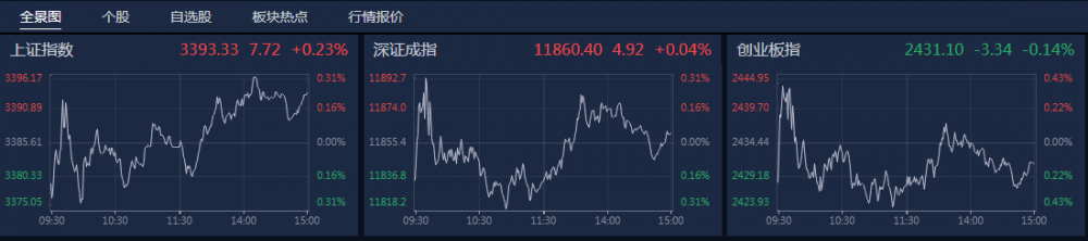 大盘全天震荡分化,沪指延续升势,创业板震荡调整。南财金融终端显示,截至收盘,沪指涨0.23%,深成指涨0.04%,创业板指跌0.14%。