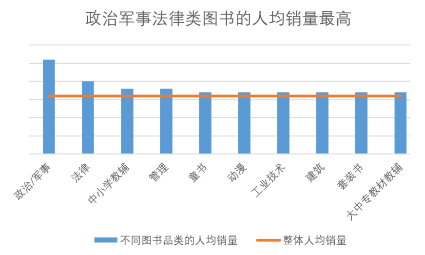 除了学生、各领域从业者等群体型消费购书,在很多细分领域还存在着很多的爱书之人。政治/军事、法律、管理类图书的人均销量最高,无论是学海无涯,还是爱好钻研,在各个领域深耕都离不开书籍。