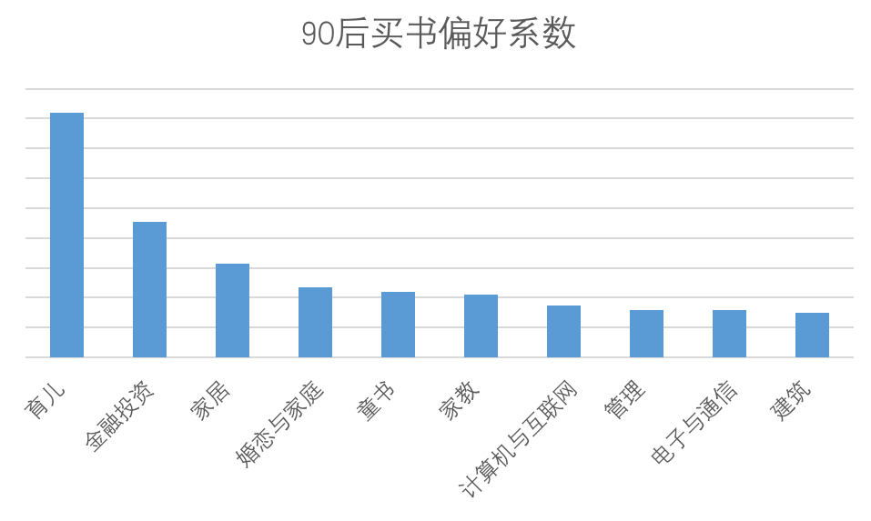 90后则忙着学习处理家庭生活和赚钱,在育儿、家居、婚恋类图书的消费偏好较高,同时在金融投资、计算机与互联网、管理类图书的消费偏好较高。
