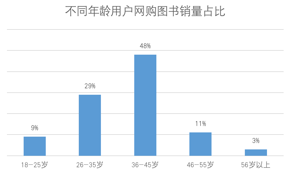 不同年龄的消费者,在买书的动机和用法上也存在较大的差异。从购买力的角度看,36-45岁消费者买走了近5成图书,26-35岁消费者买走了近3成图书。