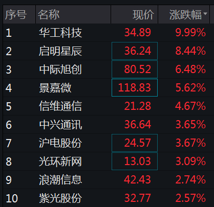 今日(4月20日),数字经济板块多只个股涨幅明显,截至发稿,华工科技涨停、启明星辰、中际旭创、景嘉微等跟涨。