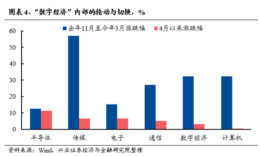 兴业证券强调,“数字经济”是内部“五朵金花”(信创、人工智能、金融科技、半导体、运营商)的轮动和切换,虽然阶段性会有局部“过热”,但依然可以找到有相对性价比的方向。“数字经济”、TMT板块本身是一个市值占比接近20%,涵盖上游基础设施与设备制造、中游技术与服务以及下游应用端的庞大产业链条。阶段性可能出现局部“过热”,但依然可以找到相对性价比。