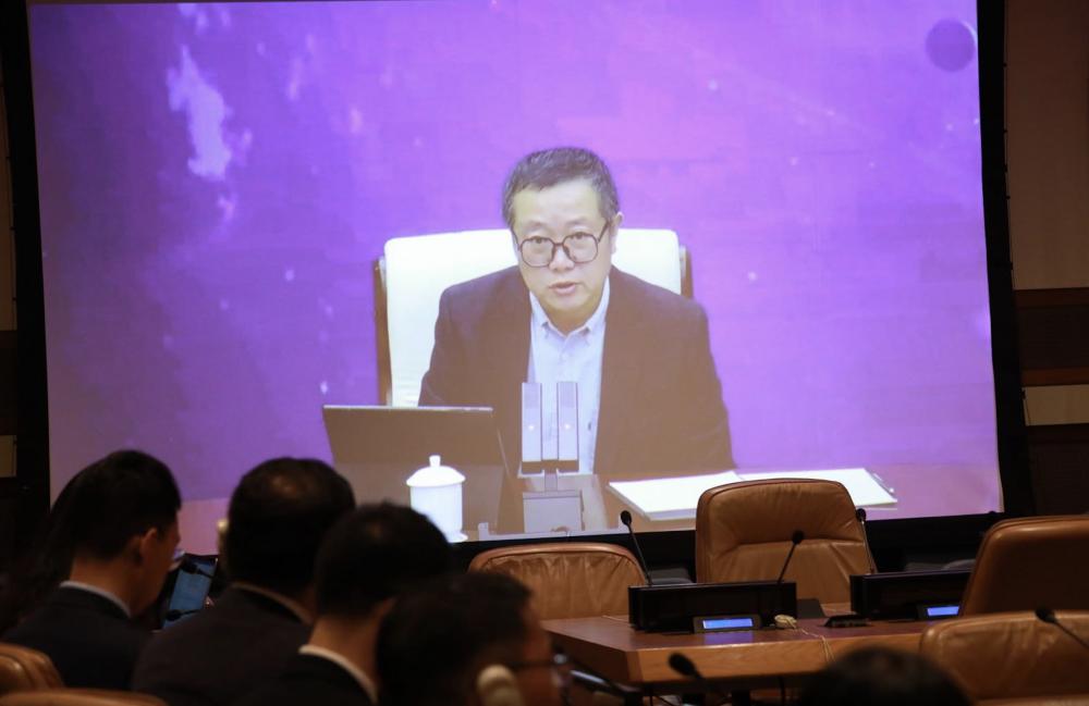(中国科幻作家刘慈欣连线出席活动,图片来源:中国常驻联合国代表团官网)