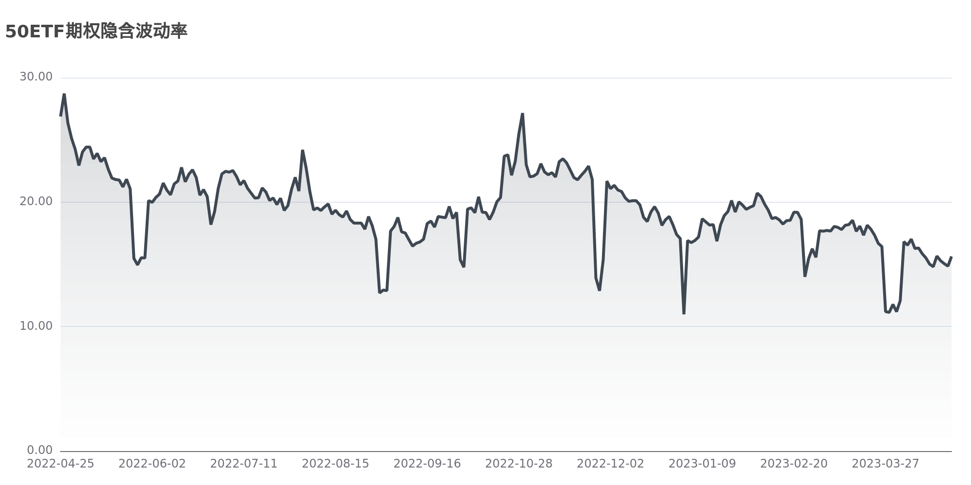 今日该指标值为15.64,目前该指标处于近一年较低区间,说明投资者认为未来市场波动处于较低水平。50ETF期权波动率(原中国波指iVIX,也称作恐慌指数),指数与上证指数存在负相关性,但不绝对。指数点位越高,代表投资者预期后市波动程度愈加激烈;指数点位越低,代表预期后市的走势愈加平稳。VIX在剧烈波动处有聚集的特征,而这些波动聚集处通常是在市场剧烈波动,或指数的低点和高位处。那么,在股指高位处的 VIX 聚拢高企意味着市场风险的集中;而股指快速下跌处的 VIX 高企意味着市场风险的释放。若VIX指数在股市快速下跌时持续的高企并突破极值,这可能预示市场的重大转折——风险已经释放到极致,股市将开始企稳并上扬。