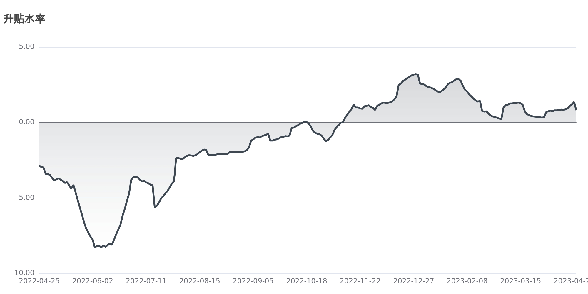 今日该指标值为0.82%,目前该指标处于近一年较高区间,说明投资者认为当前A股市场相对较强。反映期货市场投资者对市场的看法,该指标越高说明投资者认为当前市场较强,越低则说明认为市场相对较弱,因而与上证指数正相关。