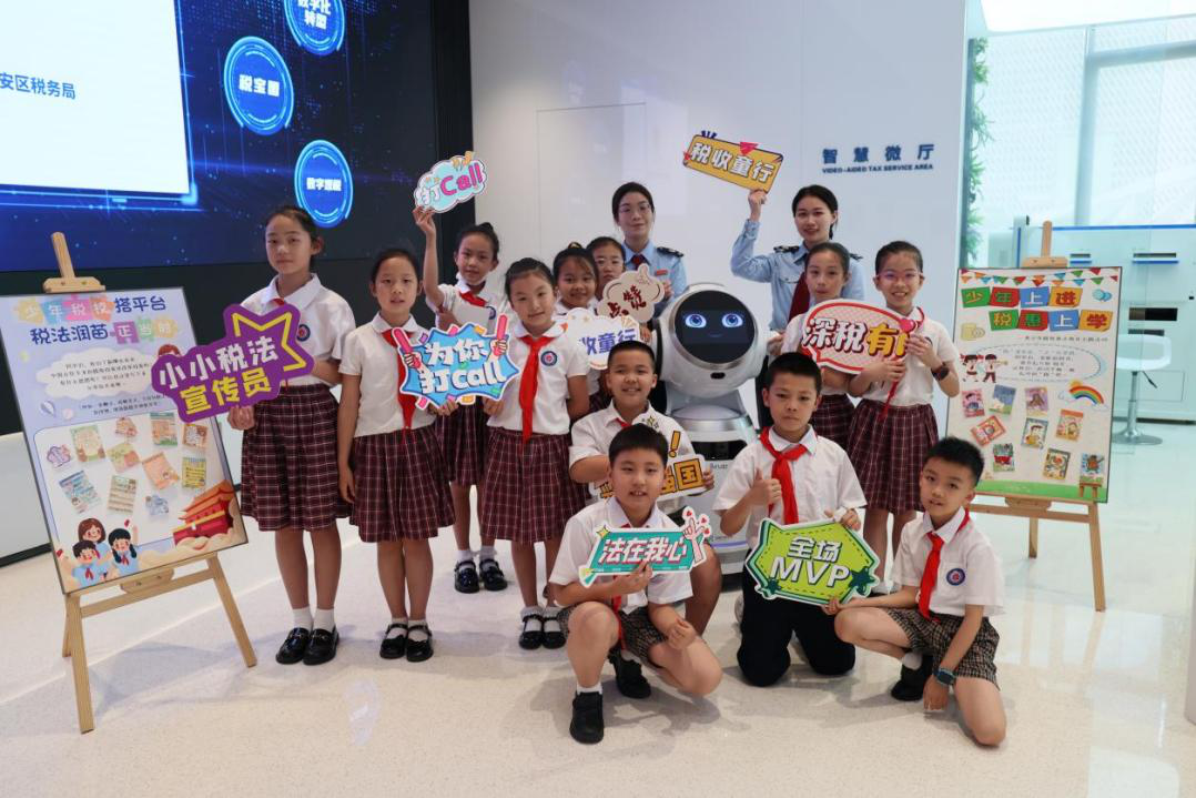 为让青少年融入税收、尽早培养税法意识,宝安区税务局联合共青团宝安区委在智慧办税厅挂牌“少先队员校外实践基地”,将其作为青少年税法教育基地,以税收元素打造内容丰富的实践活动,为学生校外学习税法知识、开展税收实践提供一个常态化平台。