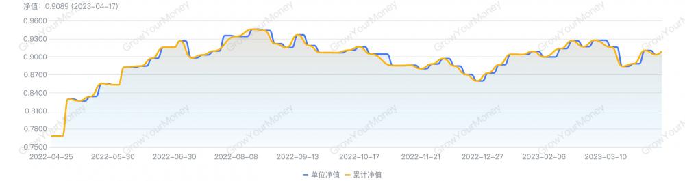 从业绩表现看,该产品以9.49%的近一年净值增长率位列榜单第二,净值处于回升通道。截至2023年4月17日,产品单位净值回升至0.9089。