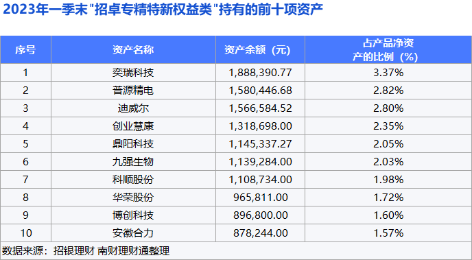 近期,招银理财“招卓专精特新权益类理财计划”也公布了2023年一季度报告。据报告显示,该产品采取权益直投模式进行资产配置,权益投资占产品总资产的比例高达93.06%。该产品重仓医疗行业,例如持仓占比最大且隶属于医疗器械行业的“奕瑞科技”,隶属于医疗大健康产业的“创业慧康”以及隶属于生物医药行业的“九强生物”。同时,“招卓专精特新权益类理财计划”同样将部分资产配置于通用设备及专用设备领域,如“普源精电”“鼎阳科技”以及“迪威尔”。