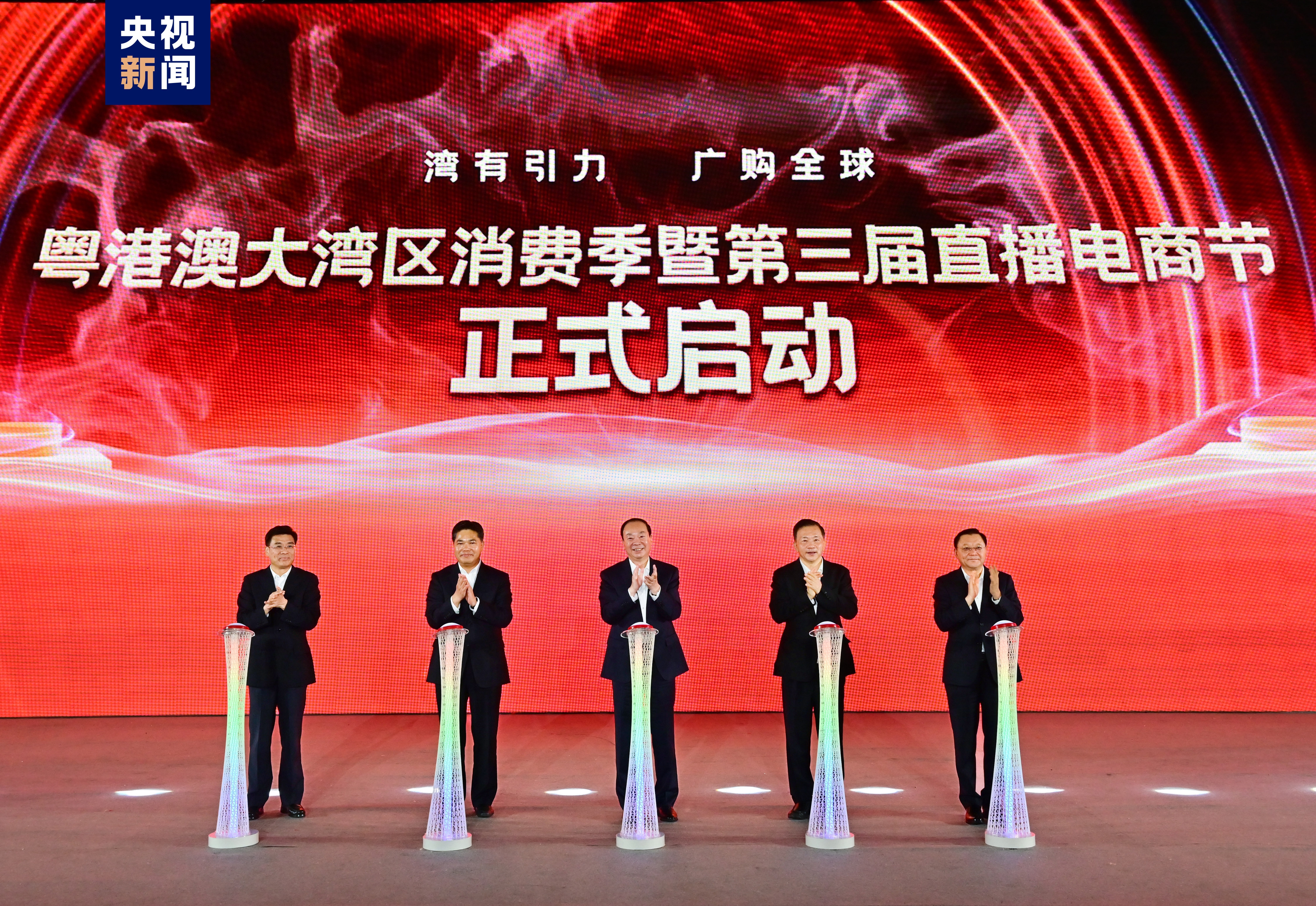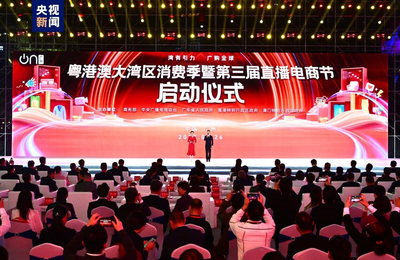 4月26日,由商务部、中央广播电视总台、广东省人民政府、香港特别行政区政府、澳门特别行政区政府共同举办的“粤港澳大湾区消费季暨第三届直播电商节”在广州市正式开启。