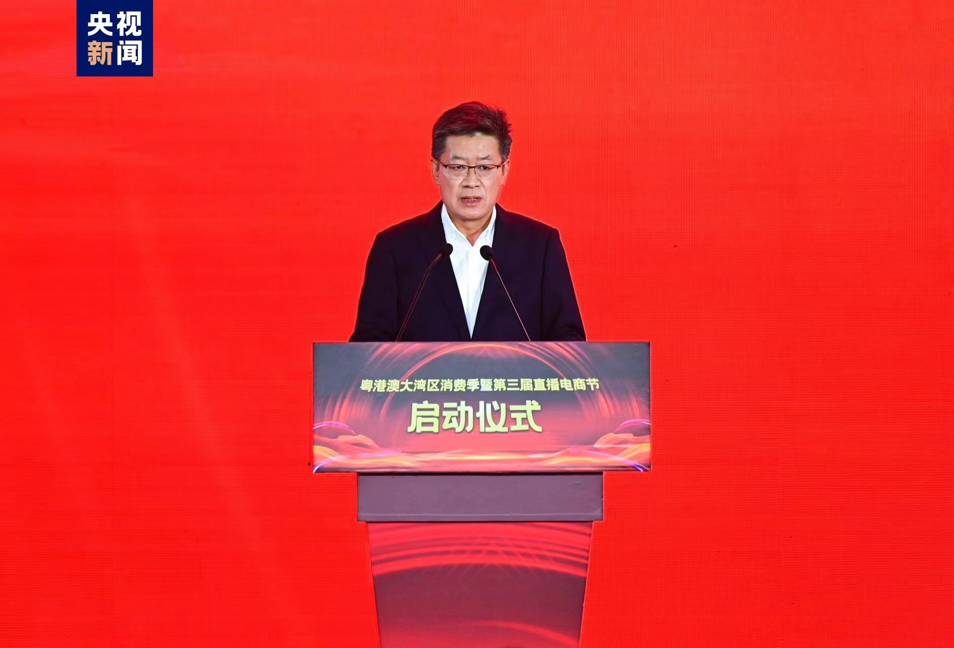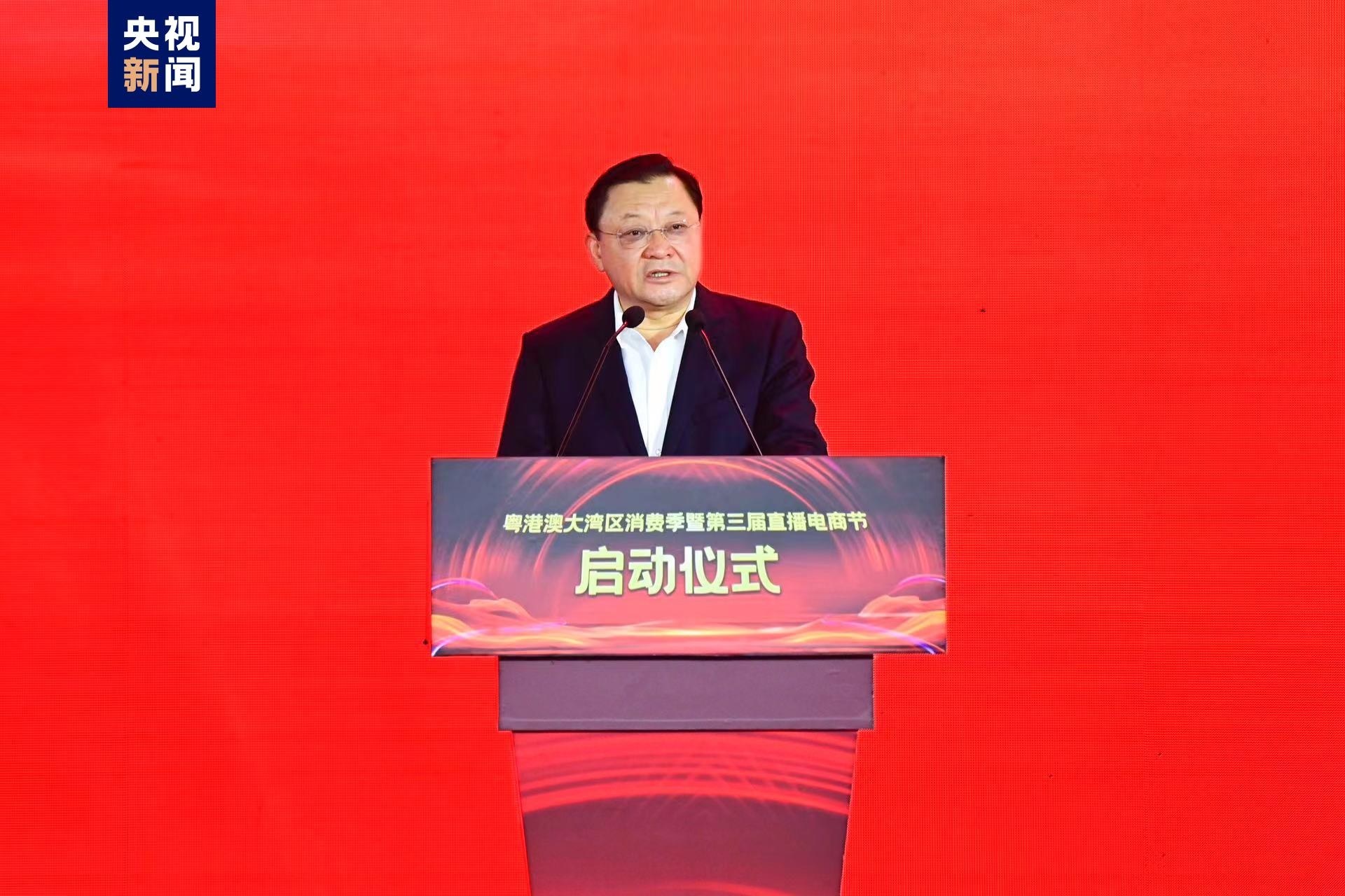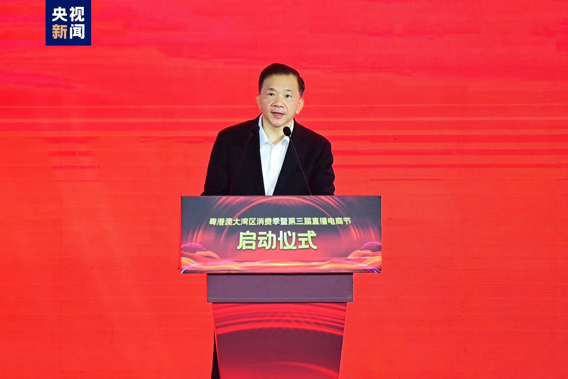 广东省委书记黄坤明出席活动,并与中宣部副部长、中央广播电视总台台长慎海雄,广东省委副书记、省长王伟中,广东省政协主席、广东省委常委、广州市委书记林克庆,商务部党组成员、副部长盛秋平共同启动“粤港澳大湾区消费季暨第三届直播电商节”。