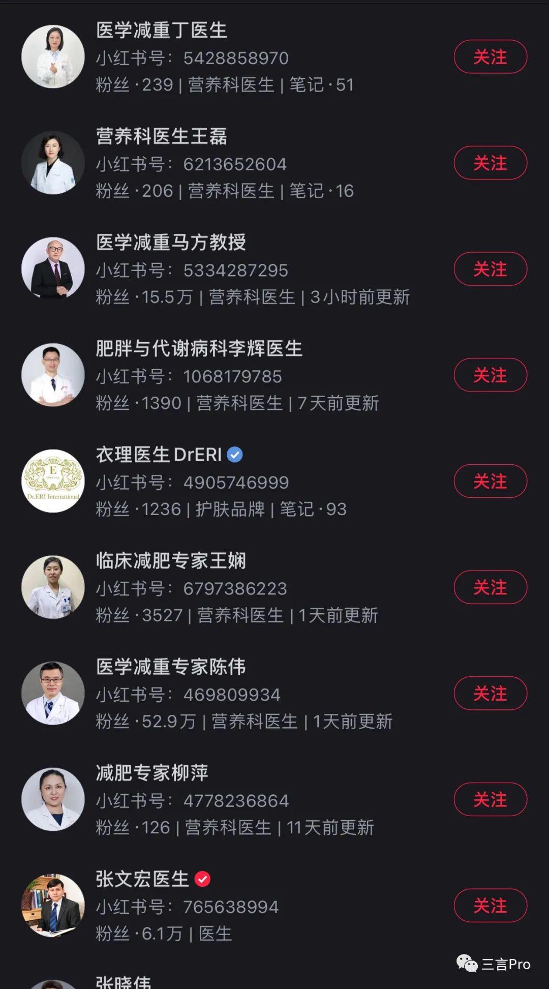 小红书上,虽然也能搜出很多名称为医生的账号,但是只有部分账号有官方认证,帐号内容则都是分享各种医学科普知识。