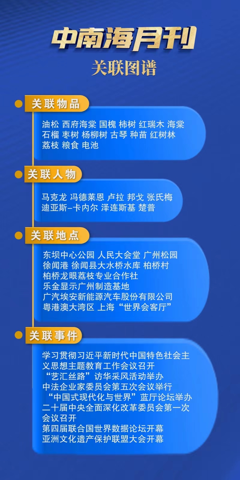 关联地点中的徐闻港、柏桥村等指向总书记的考察地。今年是全面贯彻党的二十大精神开局之年,习近平总书记两会后首次地方考察选择了广东。他对广东的干部群众说:“广东是一个窗口。到广东来看一看,了解一下党的二十大以来都有哪些新进展新气象。”