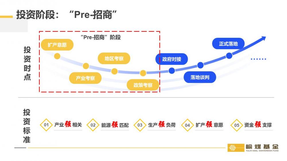在投资阶段的选择上,榆煤基金将自身定位为投资“Pre-招商”阶段的项目。秦笙解释称,很多政府引导基金声称会投资有落地意愿的企业,当在实际投资时非常保守,企业在当地实际注册公司、买地甚至是建厂之后才去投资,也不乏“空头支票”的现象。