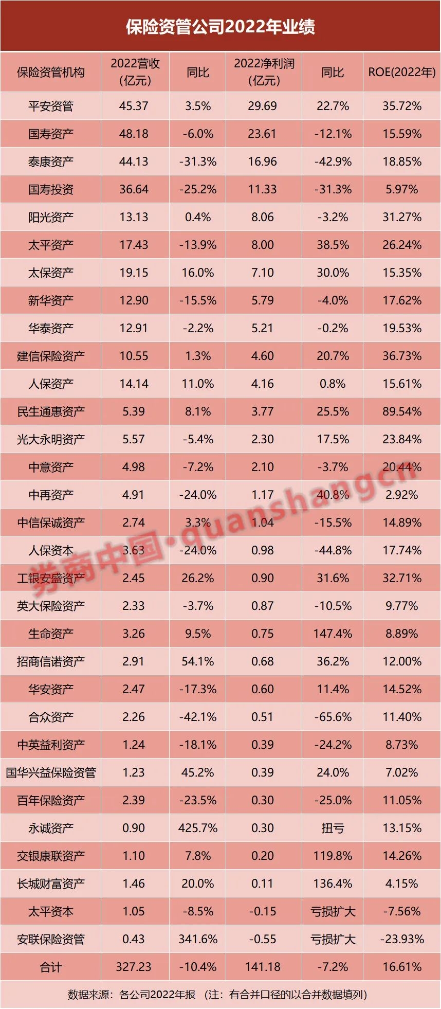 2022年股债双杀加上另类业务放缓,让保险资管整体业绩承受较大压力。