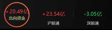北向资金全天净买入20.49亿元,其中沪股通净买入23.54亿元,深股通净卖出3.05亿元。
