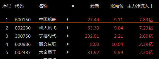 主力资金方面,中国船舶获得主力资金净流入近8亿元。