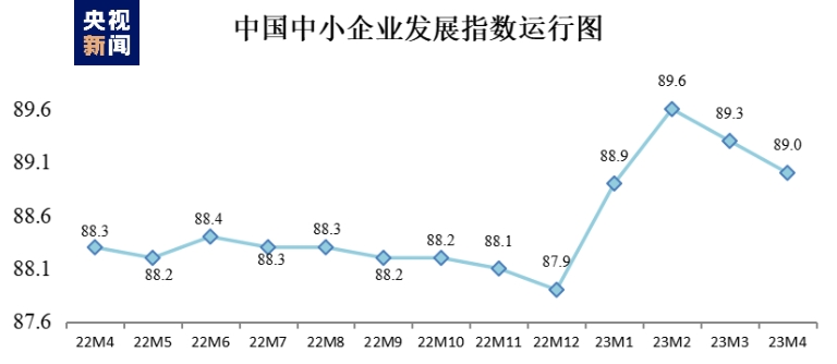 中国中小企业协会今天发布,4月中国中小企业发展指数(SMEDI)为89.0,比上月下降0.3点,但仍高于2022年同期水平。