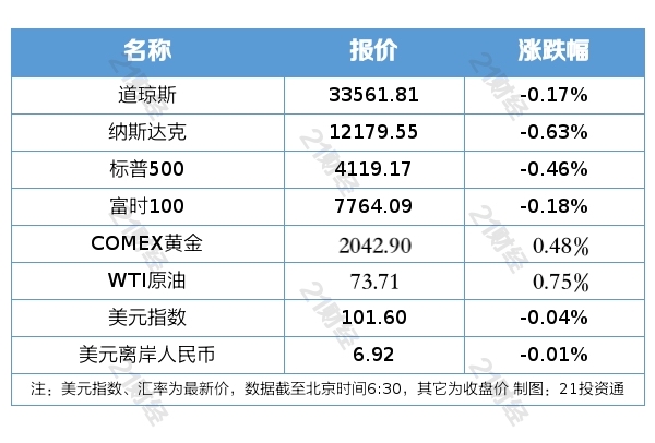 纽约股市三大股指9日下跌。截至当天收盘,道琼斯工业平均指数比前一交易日下跌56.88点,收于33561.81点,跌幅为0.17%;标准普尔500种股票指数下跌18.95点,收于4119.17点,跌幅为0.46%;纳斯达克综合指数下跌77.37点,收于12179.55点,跌幅为0.63%。