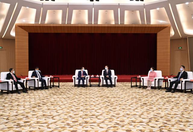 5月11日上午,省委书记黄坤明,省委副书记、省长王伟中在广州会见了第十届世界华侨华人社团联谊大会广东参访团。南方+记者 王辉 摄