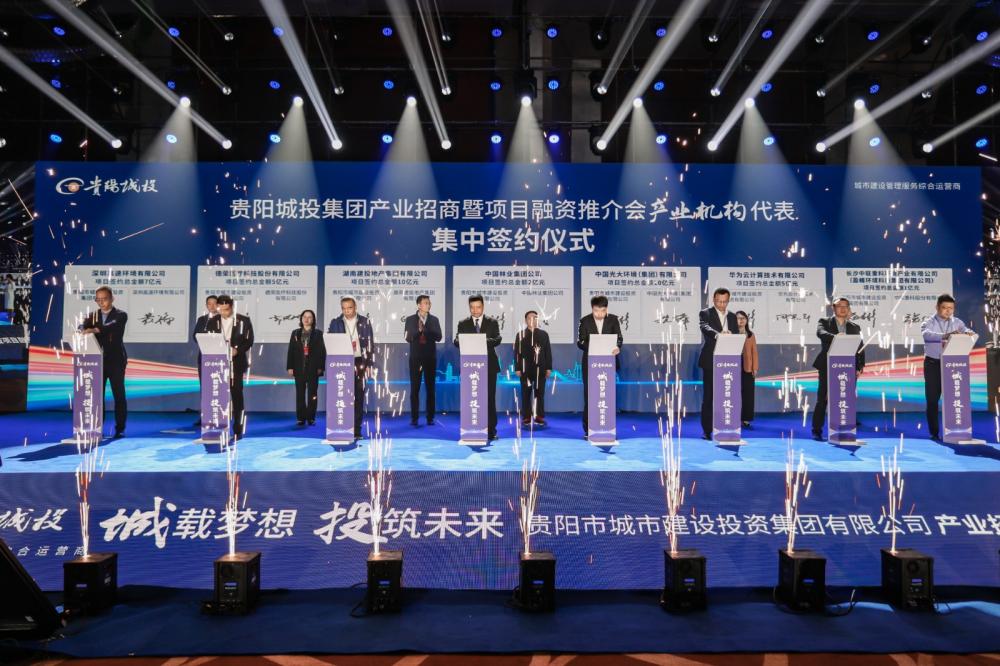 推介会上,贵阳城投集团与中国林业集团公司、德荣医疗科技股份有限公司、中国光大环境(集团)有限公司、华为云计算技术有限公司、华夏眼科医院集团股份有限公司等22家企业成功签约,签约金额共计84.5亿元。