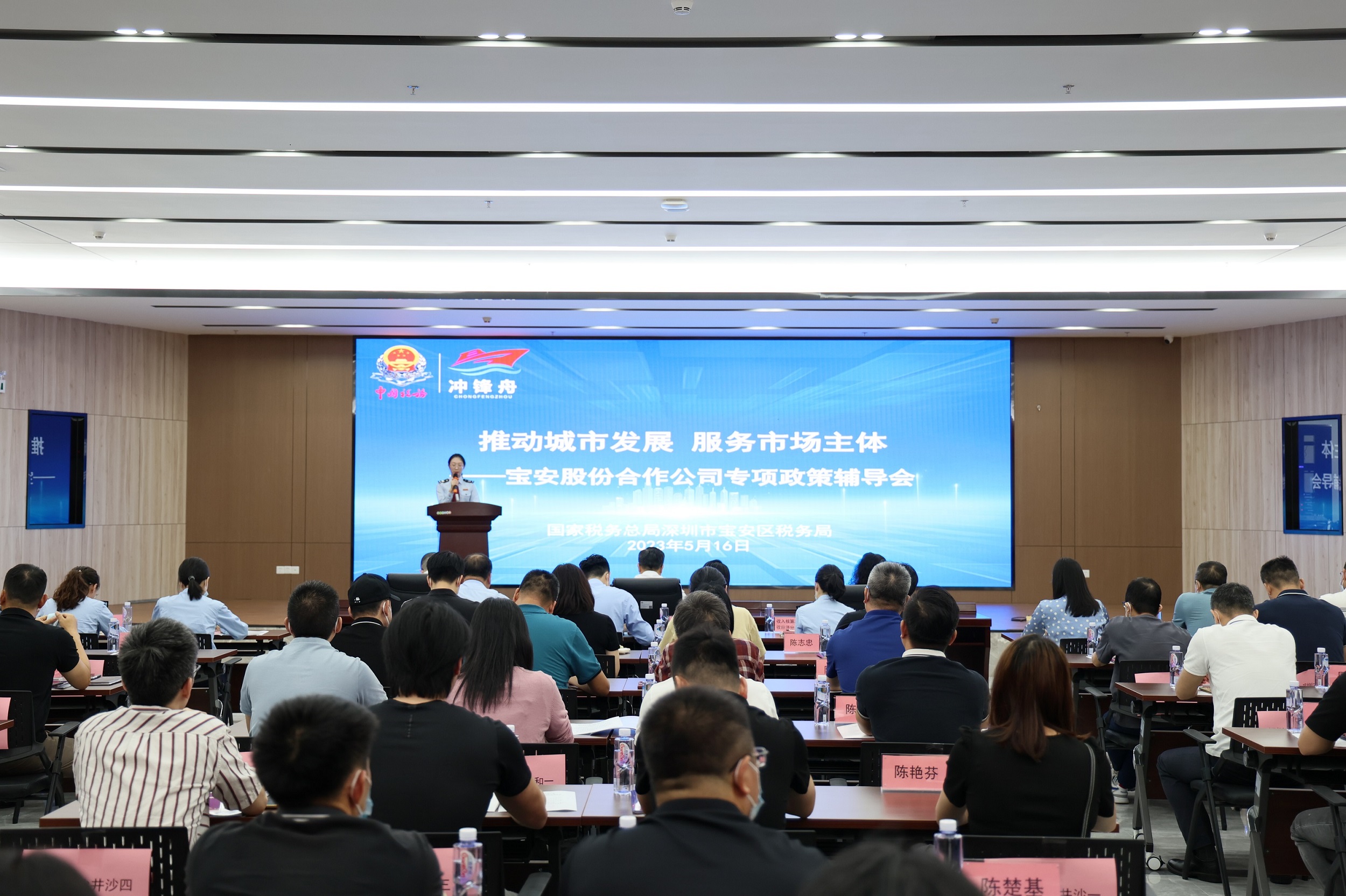 5月16日,宝安区税务局举办“推动城市发展 服务市场主体——宝安股份合作公司专项政策辅导会”,紧扣股份合作公司关注的税费政策进行了讲解,帮助其掌握政策要点,有力服务股份合作公司升级改造。宝安区税务局党委书记、局长李栋,以及宝安区沙井街道党工委副书记、办事处主任张曙及50余家股份公司董事长出席活动。