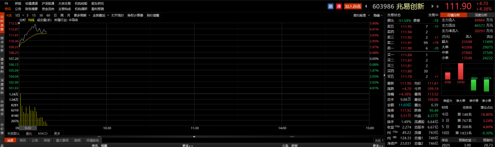 半导体板块早盘拉升,存储芯片方向领涨,其中国内存储芯片龙头兆易创新涨幅超4%。