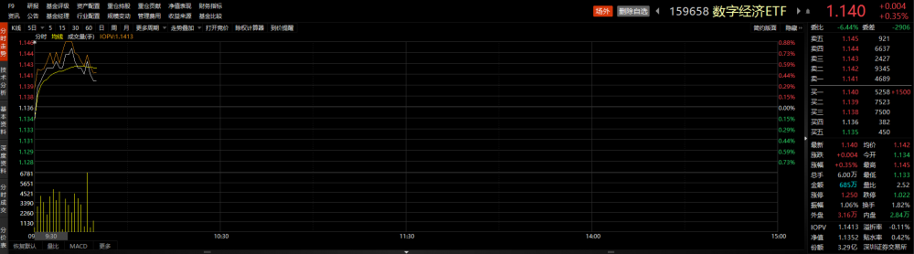 兆易创新为数字经济ETF(159658)第7大重仓股,该ETF早盘走强,截至发稿,涨幅为0.35%,换手率达1.82%。