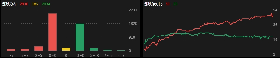 我们看到指数层面出现一定的分化背离,上证收阳,创指收十字星,科创板收小阴。从目前盘面来看,本周指数层面上会出现一定程度上的变盘,但是这个变盘上方压力3425点,下方支撑3220点,如果说这个变盘只是在这个区间内变盘,这个波动就不会太大,除非突破上轨又或者是跌破下轨。所以我认为接下来我们应该还是正常看待指数,看它一个震荡就行了,有变盘但波动不会太大。