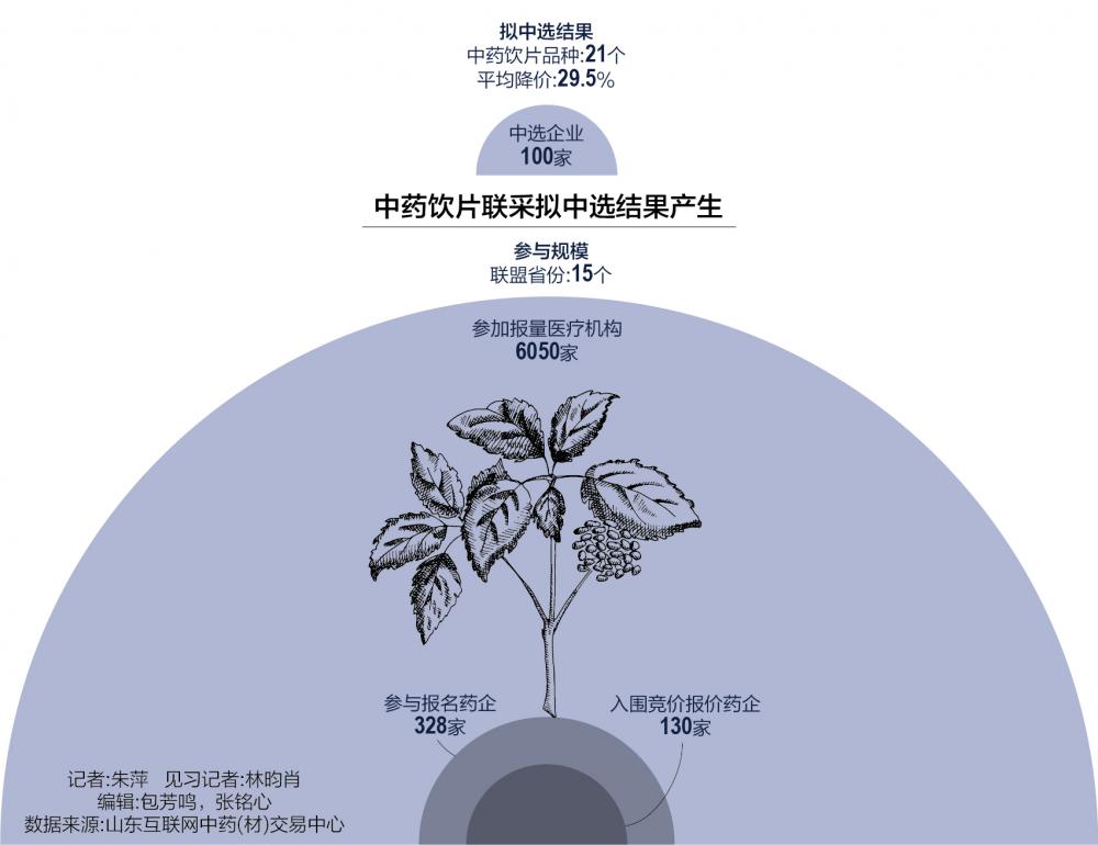 经过专家指标评审、首轮报价解密、首轮入围企业公示公布、企业样品提交、专家样品评审、二轮报价解密等工作,2023年5月22日,联盟采购拟中选结果产生,100家企业的782个产品拟中选,拟中选价格较当前市场价平均下降29.5%。21个中药饮片品种42个品规均有企业中选,其中31个品规拟中选企业达到10家以上,有11个品规拟中选企业数量超过30家。