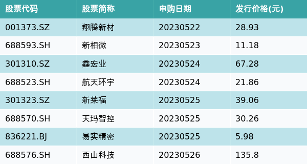 上周有8只新股发行,详情见下表: