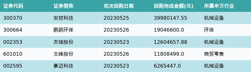 上周共有14条开始执行回购公告,其中执行金额最多的5条公告为: