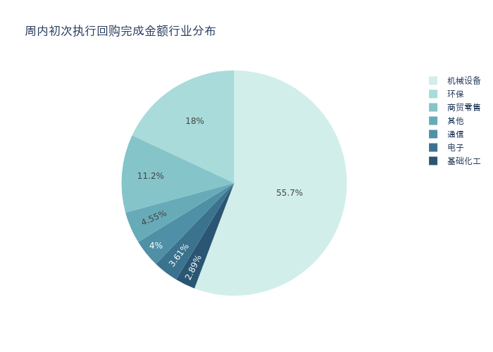按照初次执行金额所在不同行业分布,金额最高的3个行业分别为:机械设备、环保、商贸零售,详情见下图: