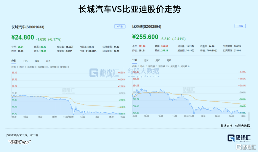 这不,在A股上,举报的长城汽车,股价应声大跌了6个多点,比亚迪呢,只是云淡风轻跟着跌了2个点,跟其他同行没啥区别。