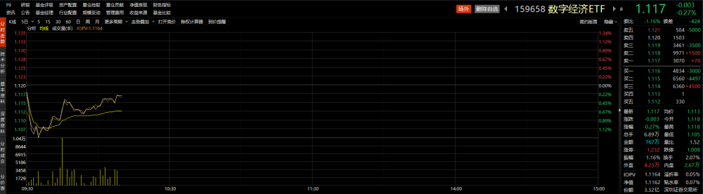 相关ETF方面,当前科大讯飞为数字经济ETF(159658)第4大重仓股,该ETF早盘一度跌超1%,随后跌幅明显收窄,截至发稿时,跌幅为0.27%,换手率达2.07%。