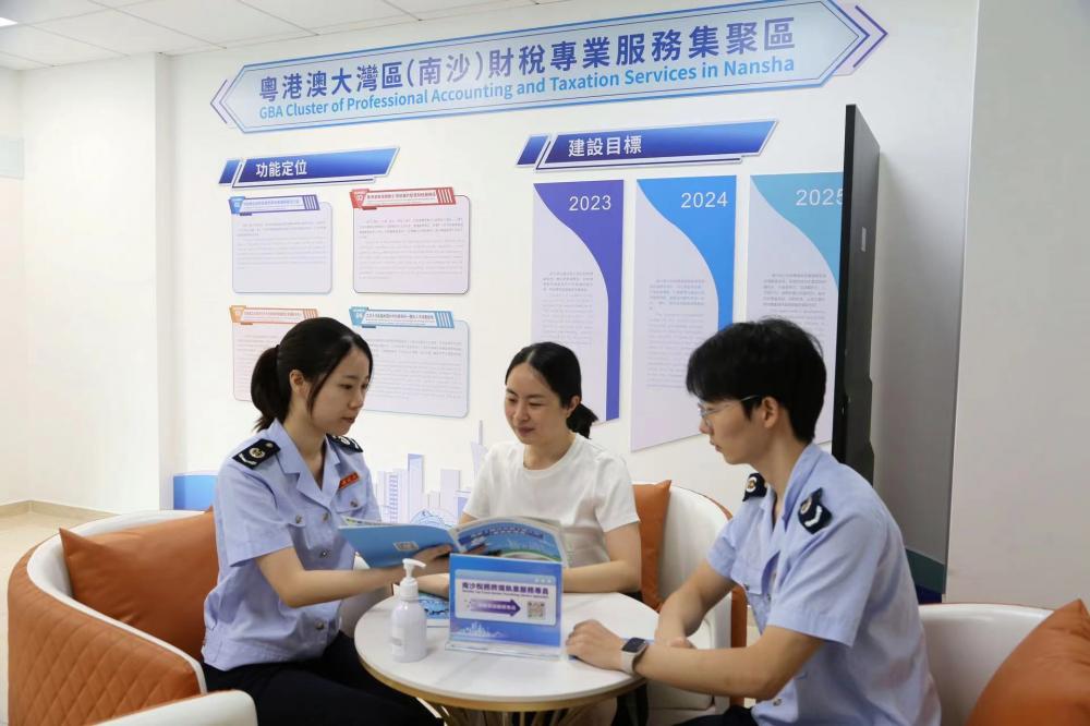 设立在南沙区税务局智慧办税服务厅二楼的港澳人士跨境执业服务中心,是为满足港澳人士跨境执业需求、强化湾区深度融合、实现税务服务机制“软联通”而打造的税务服务专区。走进服务中心,操作手册、政策解读课件等资料指南摆放有序,指南紧密结合了《办法》和区内出台的对港澳涉税专业人士在南沙集聚发展给予财政补贴等内容,并准备了贴近港澳人士阅读习惯的中文繁体版本、英文版本。服务中心还配备了港澳人士跨境执业服务专员,就便利执业、税费办理等事宜提供多语种咨询服务。与此同时,“南沙税务”微信公众号也同步开设了特色模块,详细解读政策福利,线上线下全方位指引港澳涉税专业人士顺利执业。