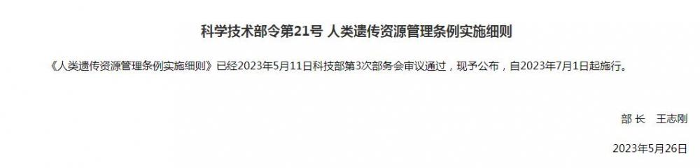 第三条 科学技术部(以下称科技部)负责全国人类遗传资源调查、行政许可、监督检查、行政处罚等管理工作。
