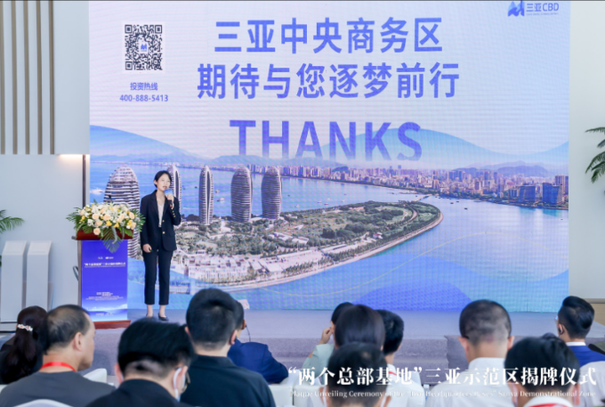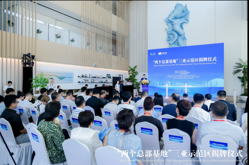 2023年6月2日上午,“两个总部基地”三亚示范区揭牌仪式在保利国际广场隆重举行。三亚市人民政府副市长,中央商务区管理局党委书记、局长尹承玲出席仪式,柬埔寨王国驻海口总领事Mr. CHHUM Bunthan及众多企业、商协会代表参会。此次揭牌仪式,也标志着三亚“两个总部基地”建设又迈出了重要一步。
