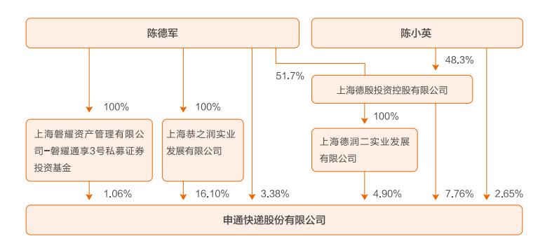 截至2022年底,创始人陈德军、陈小英兄妹,共持有申通股权的35.85%,两人构成一致行为人关系,仍为实际控制人。