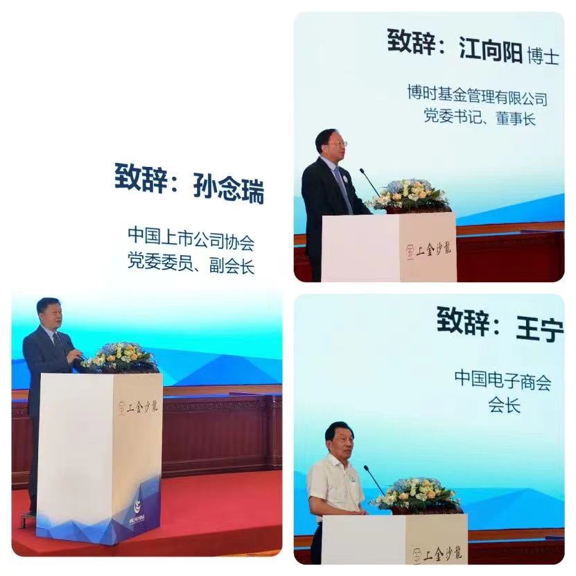 图为:中上协党委委员、副会长孙念瑞,博时基金党委书记、董事长江向阳,中国电子商会会长王宁