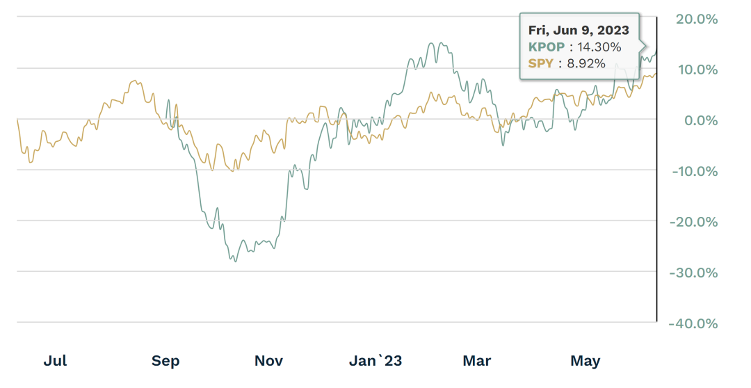 比如去年推出的KPOP ETF表现就很不错。据ETF.com数据,尽管在去年9月开始交易后,该基金的资产规模仅319万美元,今年没有新的资金流入,但该基金目前回报率达到14.3%,超过追踪标普500指数的SPDR S&P 500 ETF(SPY)的8.92%。