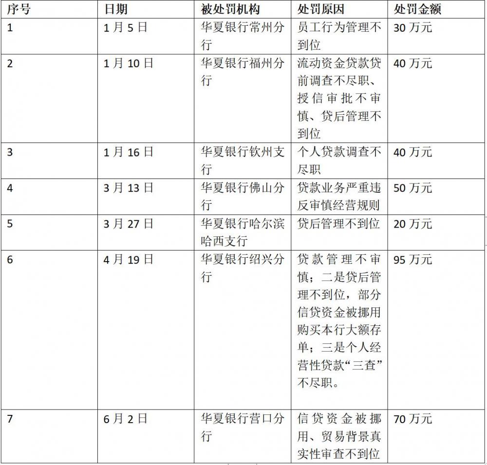( 华夏银行各分行年内被处罚情况,21世纪经济报道记者依据国家金融监管总局官网信息整理)